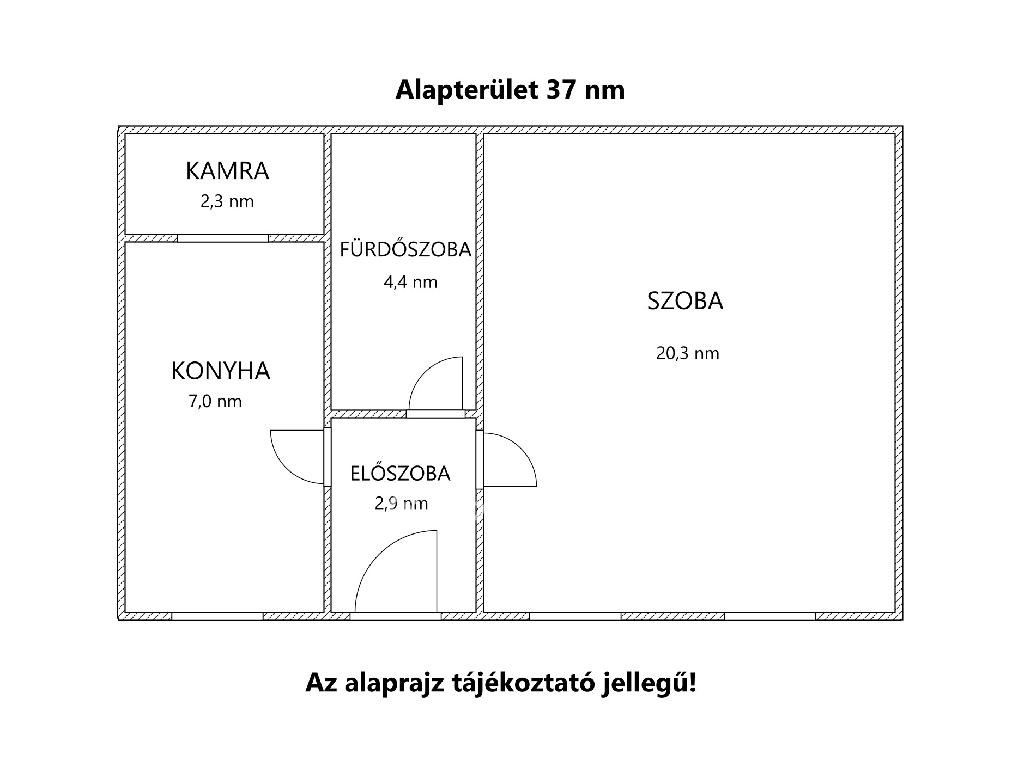 Az ingatlan 37 nm alapterületű, egyszobás.