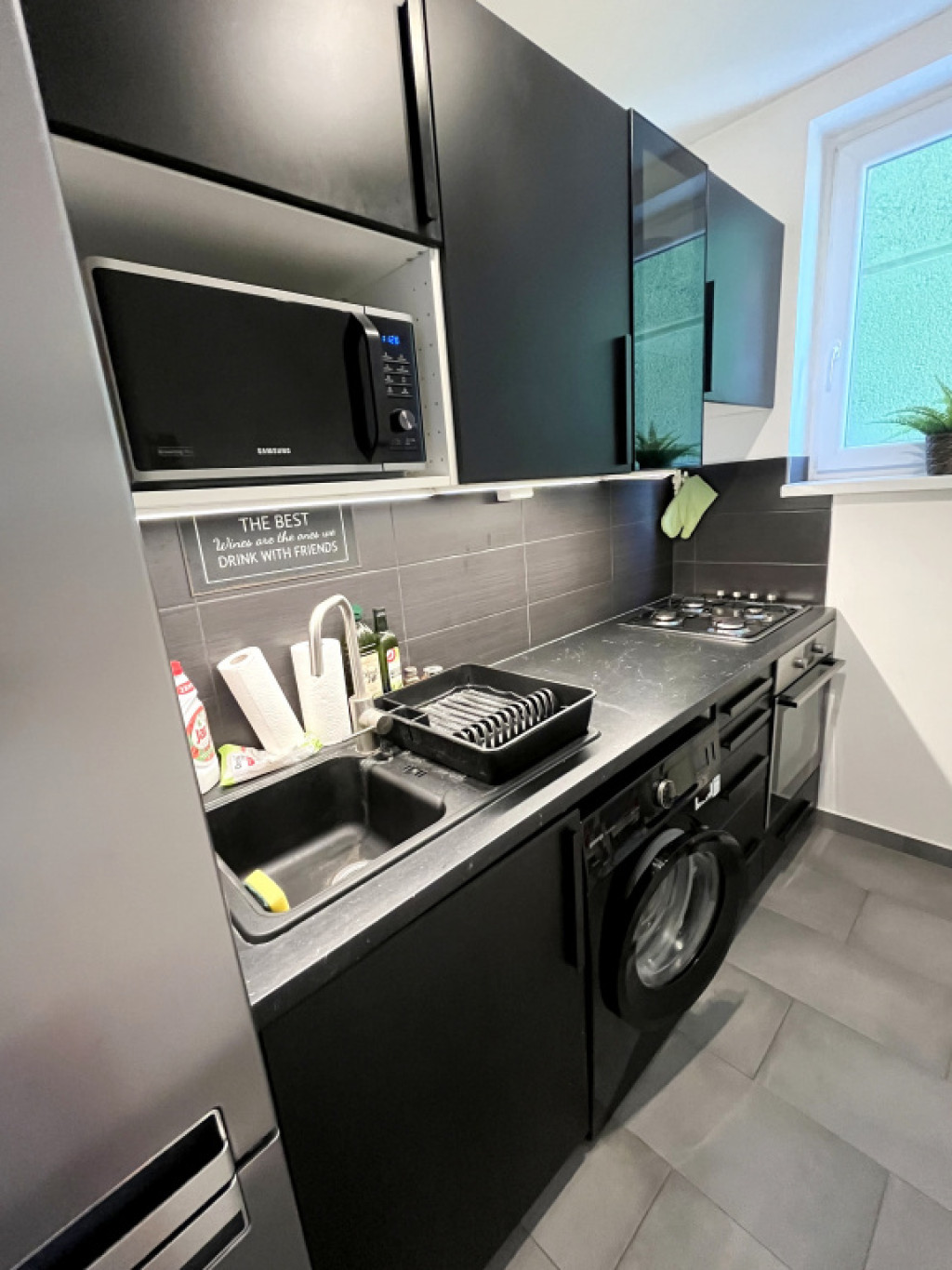 - konyha bútorozva gépesítve: hűtőgép, mosógép beépítve, gáz tűzhely elektromos sütővel és mikró is az ár részét képezi,