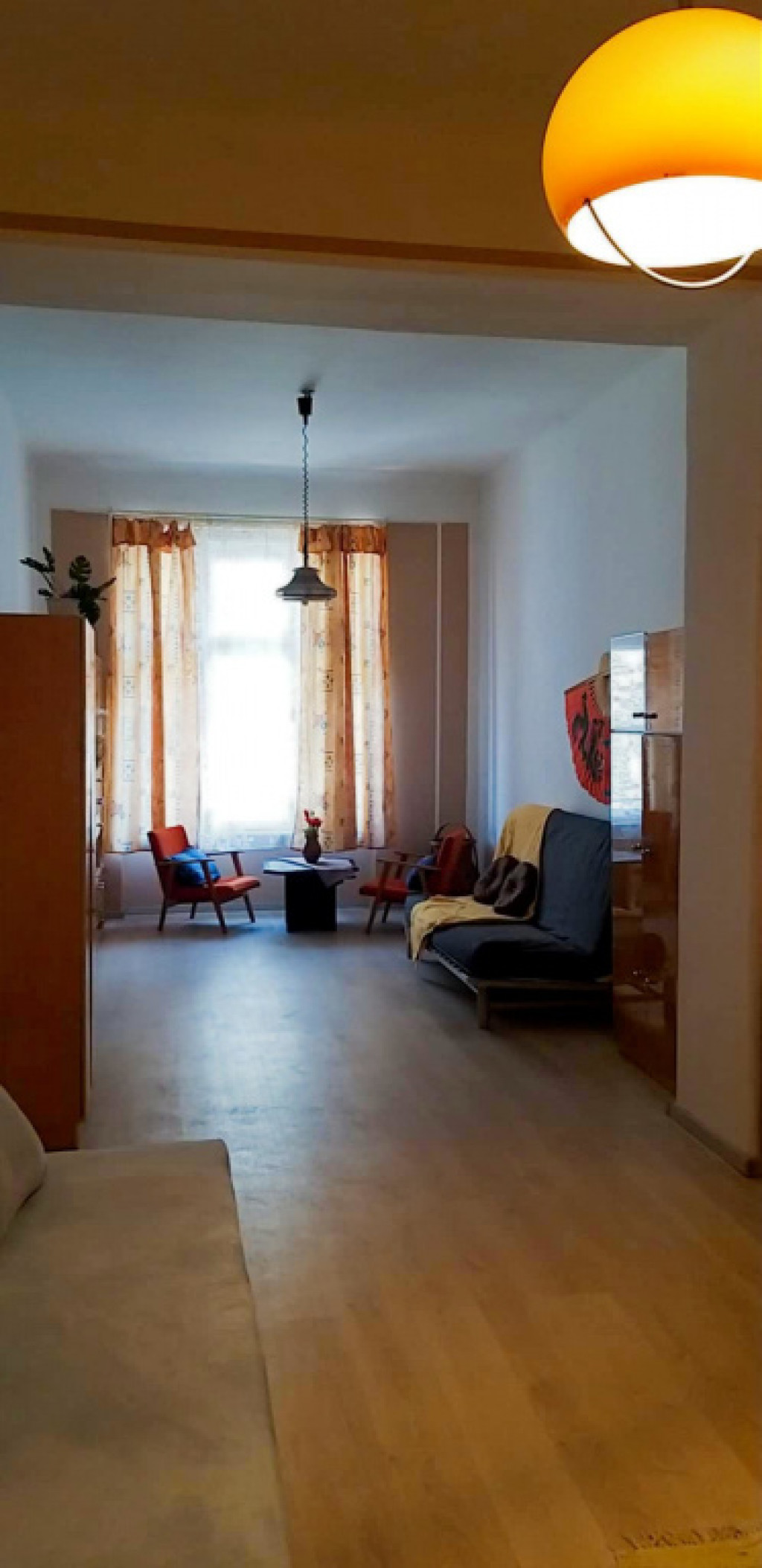 Eladásra kínálok egy 2. emeleti, 45 nm-es, 1 nagy szobával(33 nm) rendelkező lakást, körfolyosós, átlagos állapotú társasházban, a XIV. kerület egyik legkedveltebb részén, az Angol utcában, karnyújtásnyira az Egressy úttól. Ablaka a szomszéd új építésű ház belső, szépen gondozott, zöld kertjére néz, így a lakás rendkívül csendes és nyugodt. A lakás részben felújított, a víz- és villanyvezetékek cseréje megtörtént, valamint egy műanyag bejárati ajtó került beépítésre. Gázkonvektor biztosítja a meleget, a melegvízről pedig villanybojler gondoskodik. A belmagasság 3,5 méter, ami fekvő galéria kialakítását teszi lehetővé, tovább növelve ezzel a teret. Tartozik hozzá egy saját, 3,5 nm-es zárható, száraz tároló a pincében, ami ideális kerékpárnak vagy szezonális holmiknak.