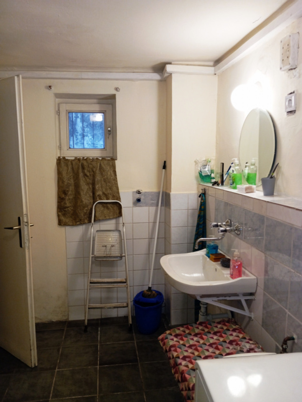 A fürdőszoba és a WC egy helyiségben található.