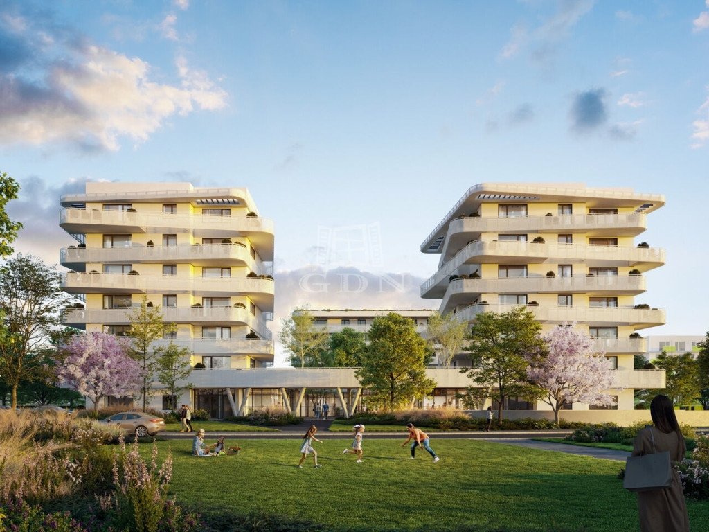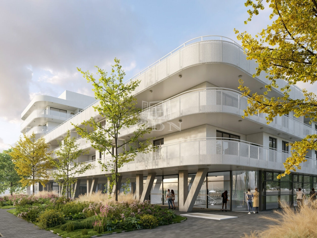 A két épületből álló beruházás során összesen 140 lakás épül, melyek izgalmas vonalvezetésű erkélyei segítik a többlakásos épület harmonikus illeszkedését a ligetes park és a megújult Rákos-patak által létrejövő környezetbe.