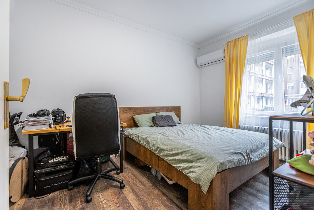A lakás teljes felújításon esett át: víz- és villanyvezetékek cseréje, új műanyag nyílászárók redőnnyel és szúnyoghálóval, korszerű fürdőszoba, 3,5 kW klíma a hálóban. A modern nyílászáróknak köszönhetően télen alacsony rezsivel.