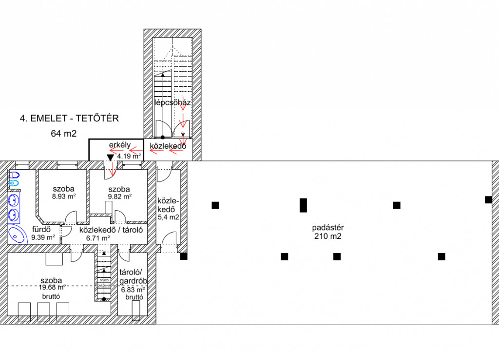 Befektetők részére további lehetőséget ad a társasház 226 m2-es tetőterének kivásárlása, amely a 64 m2-es lakás mellett van közvetlen.