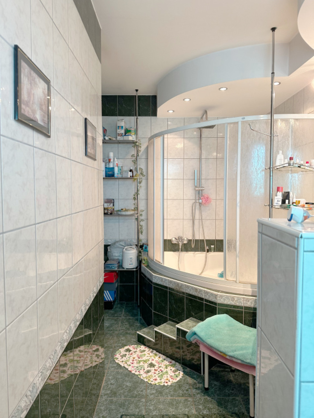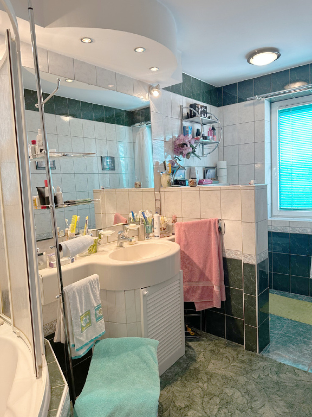 o fürdőszoba, részben leválasztott wc + bidével (ablakos)