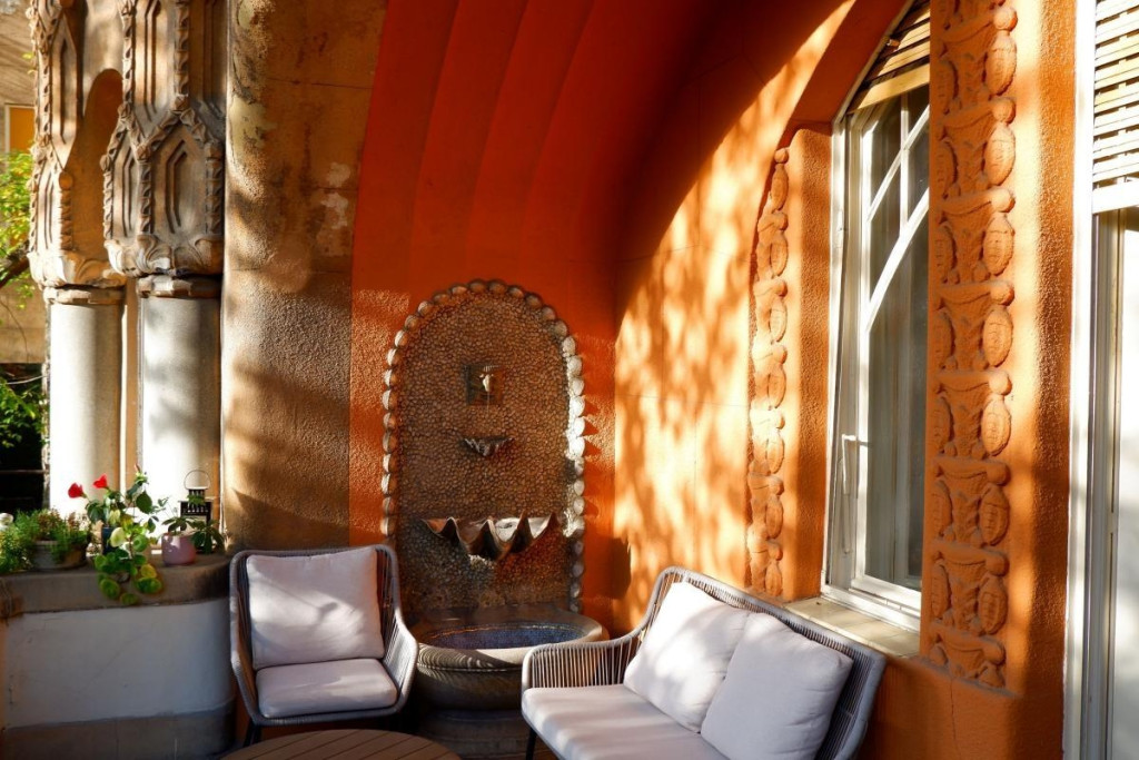 A teraszon még egy csodás szecessziós falikúttal is van vízvételi lehetőség!