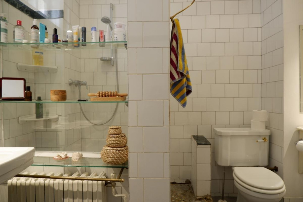 A fürdőszoba is kifejezetten kényelmes, nagy ablakos, a kádon kívül épített tusoló és WC is van.
