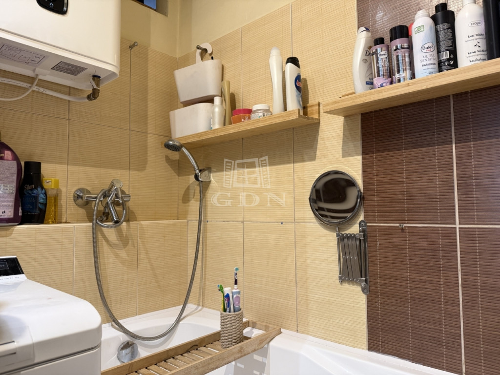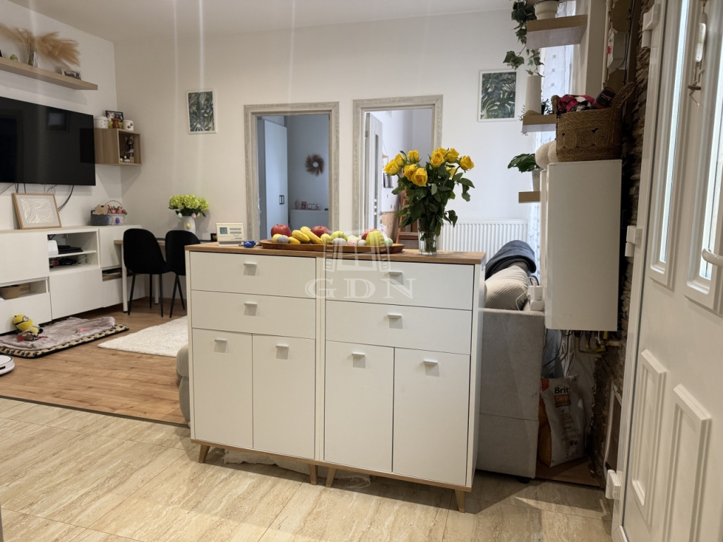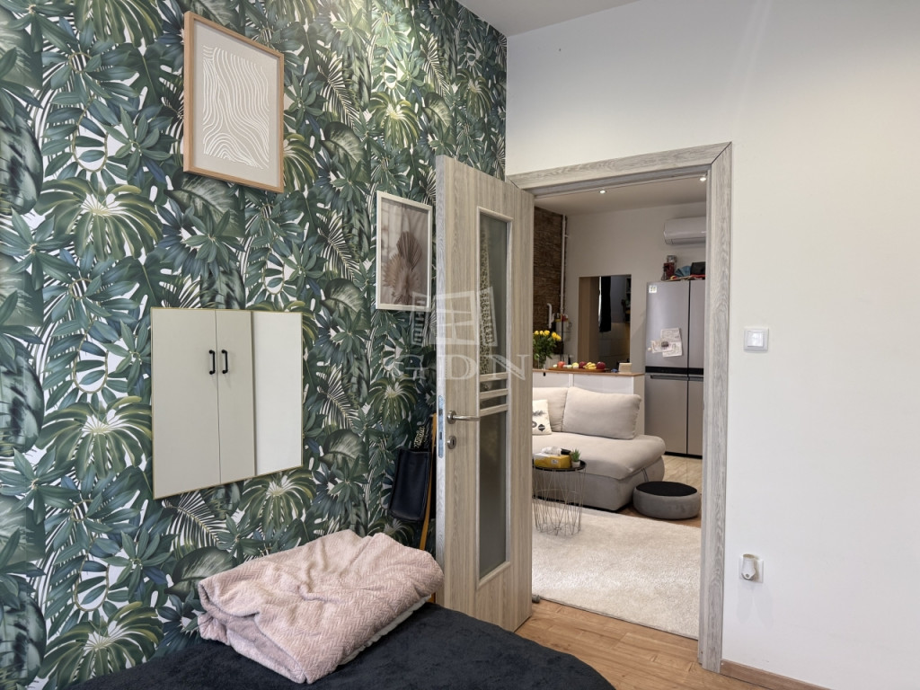 A lakás jó elosztású, világos terekkel rendelkezik: tágas nappali, két külön nyíló szoba (az egyik galériázott), külön WC és kádas fürdőszoba került kialakításra. A konyha egyedileg, asztalos által készített bútorral és beépített gépekkel felszerelt. Az ingatlanban két klíma található, a nyílászárók műanyagok, a burkolatok vízállóak. A bejárati ajtó egyedi gyártású. A lakás 2024-ben teljes felújításon esett át, melynek során a villany- és gázvezetékek is cserére kerültek.