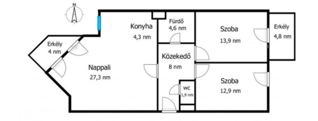 Ez a legjobb tájolású lakás itt, a hálók a reggeli- délelőtti napfény kapják, kora délutántól pedig a nappali felől süt a nap.