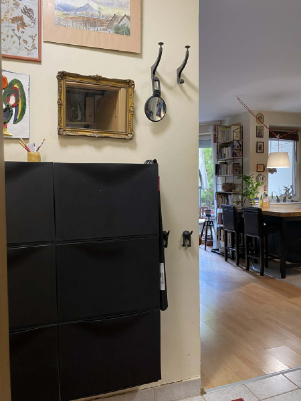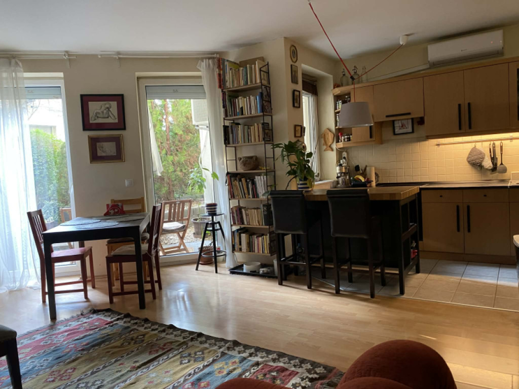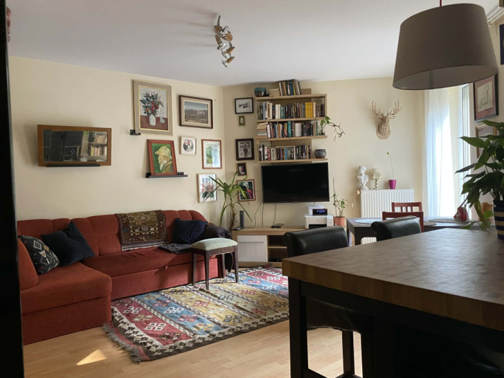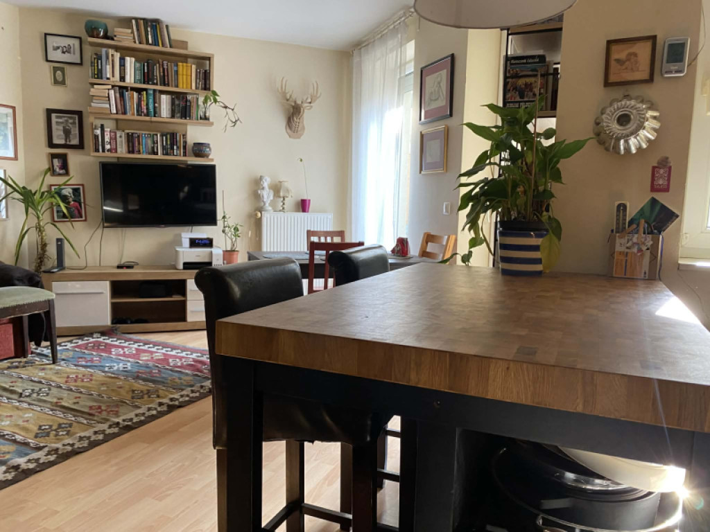Művész emberek lakják – akik mostanra épp kinőték, de maradnak a környéken, mert imádják a helyet- és bár a bútorok, képek, kiegészítők nem maradnak a lakásban, érdemes ezt a stílust fontolóra venni az új tulajdonosnak, nagyon passzol a lakás szelleméhez.