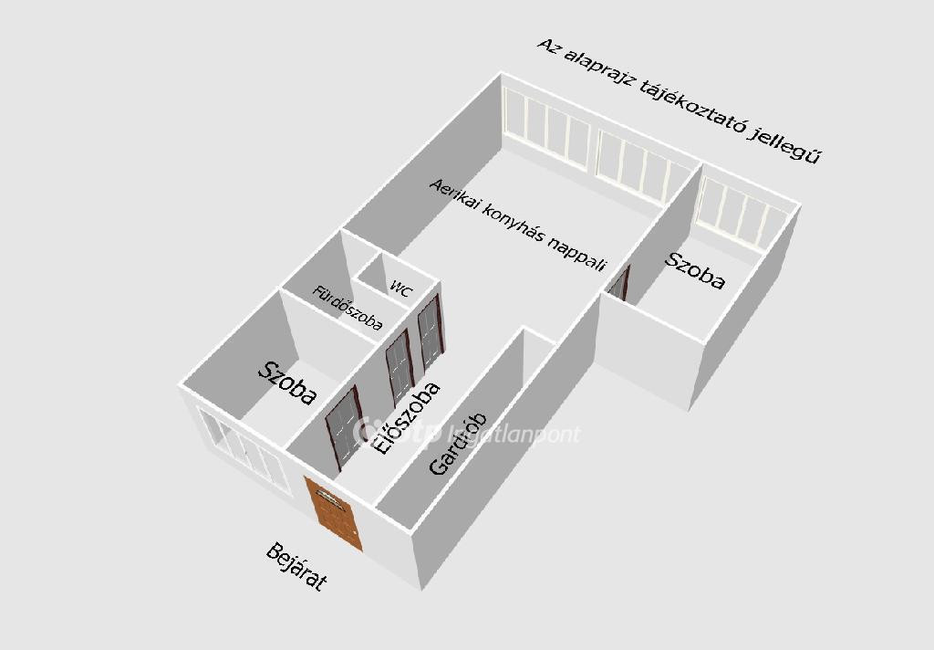 Az ingatlan a tulajdoni lapon 2 szobásként szerepel, de a felújítás során egy amerikai konyhás nappali és további 2 külön nyíló szoba került kialakításra, így a tér praktikus és sokoldalúan használható.