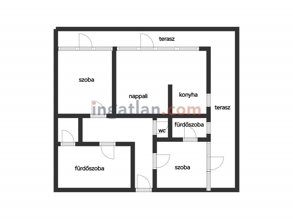 Eladóvá vált a Cordia Thermal lakóparkban egy 60 m2 alapterületű amerikai konyhás nappali + két szobás, dupla komfortos, termál vízzel, 40 m2 terasszal körbe ölelt saját szaunával felszerelt társasházi lakás. Az amerikai konyhás nappali 20 m2 beépített, gépesített konyhabútorral. A szobák nagy panoráma ablakosak, külön nyílnak, mindegyik szobából közvetlen kijárattal a teraszra. A 10,5 m2 alapterületű szobából nyílik a zuhanyzóval, mosdóval felszerelt ablakos fürdőszoba. A kisebbik szobával szemben helyezkedik el a mosdóval, káddal, toalettel, szaunával és termál vizes csappal felszerelt fürdőszoba. A lakásban külön toalett is kapott helyet. A fűtés és a meleg víz házközponti egyedi mérőkkel.