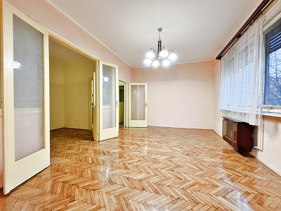 A 75 nm ingatlan, tágas NAPPALI, lezárható HALL, 2 különnyíló HÁLÓSZOBA, ablakos KONYHA, KAMRA, FÜRDŐSZOBA, plusz mellékhelyiség, közlekedő elosztású, belmagassága 3 méter, magasföldszinti, CSENDES belső kertre néző, NAPFÉNYES, DÉLNYUGATI fekvésű.