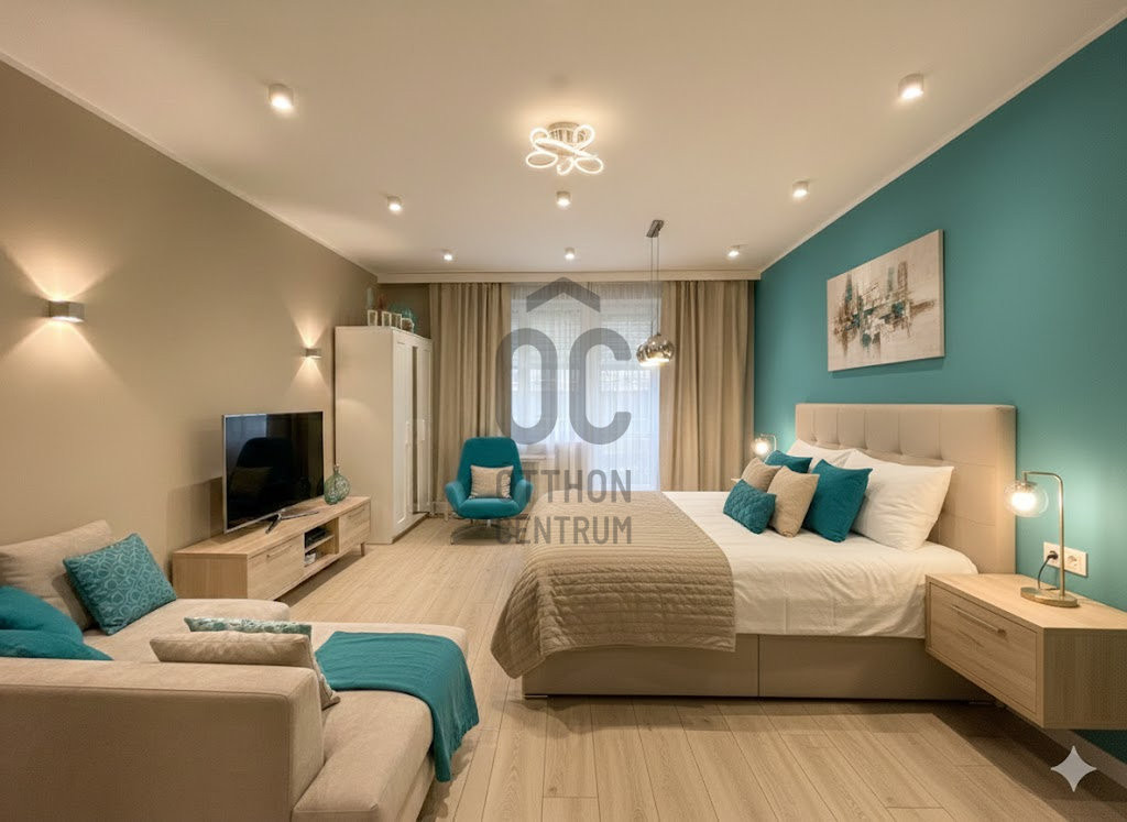 Jelenleg nappali + 1 hálószobás, de amerikai konyhás nappalivá alakítva, további 1 hálószoba kialakítható.