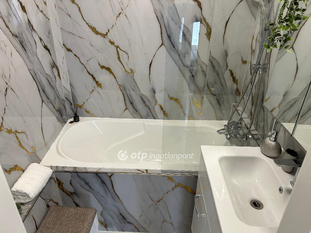 - Fürdőszoba esőztető zuhannyal, kádparavánnal, tágas kialakítással