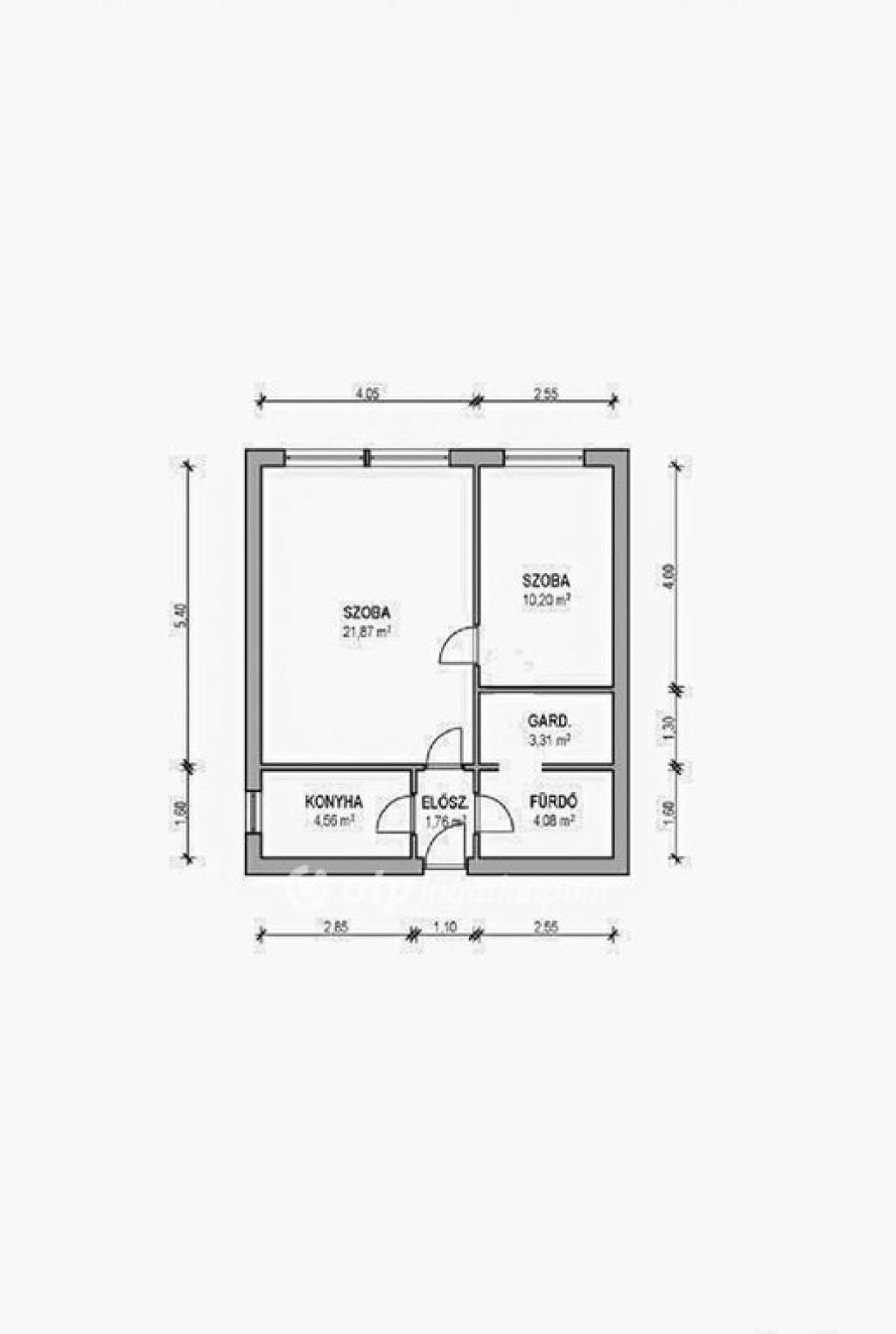 - 1,5 szoba, praktikus elosztás