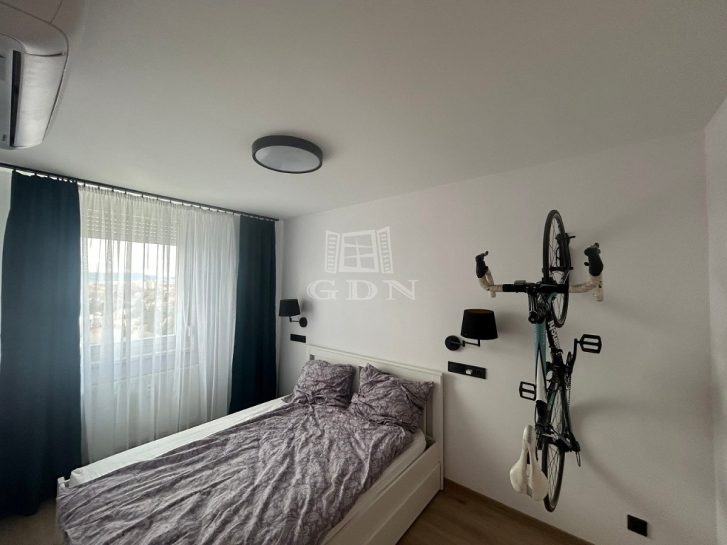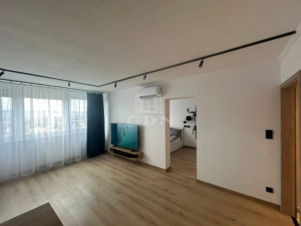 A lakás a tízedik emeleten helyezkedik el, így a nappaliból gyönyörű utcai kilátásban lehet része az új tulajdonosnak.