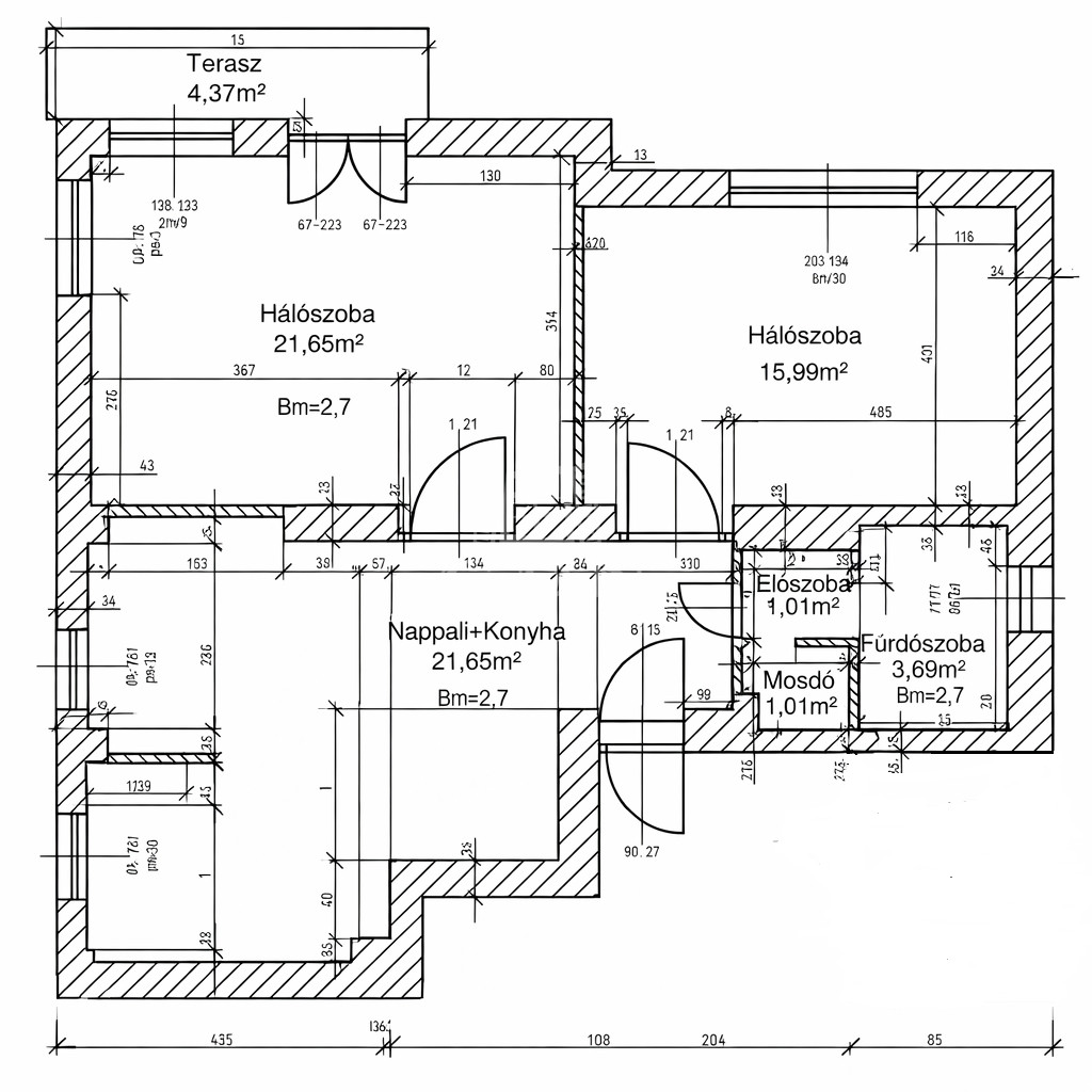 - 2 szoba + 1 félszoba (tulajdoni lap szerint)