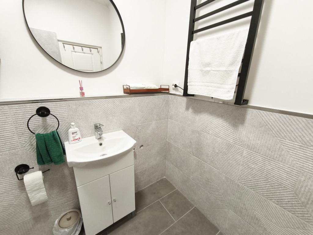 A lakásbelsőt a mai dizájntrendeket követő MODERN stílusú, rendkívül kellemes hangulatú otthonná alakították.