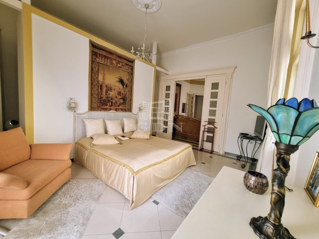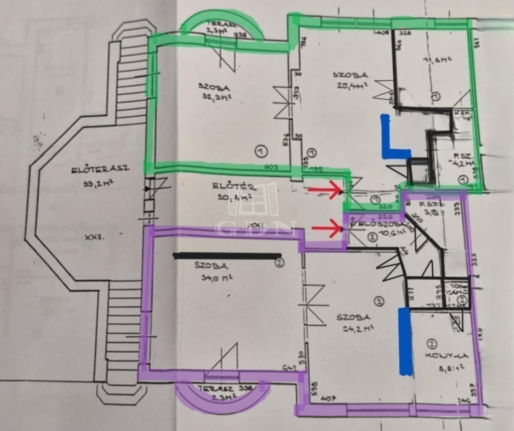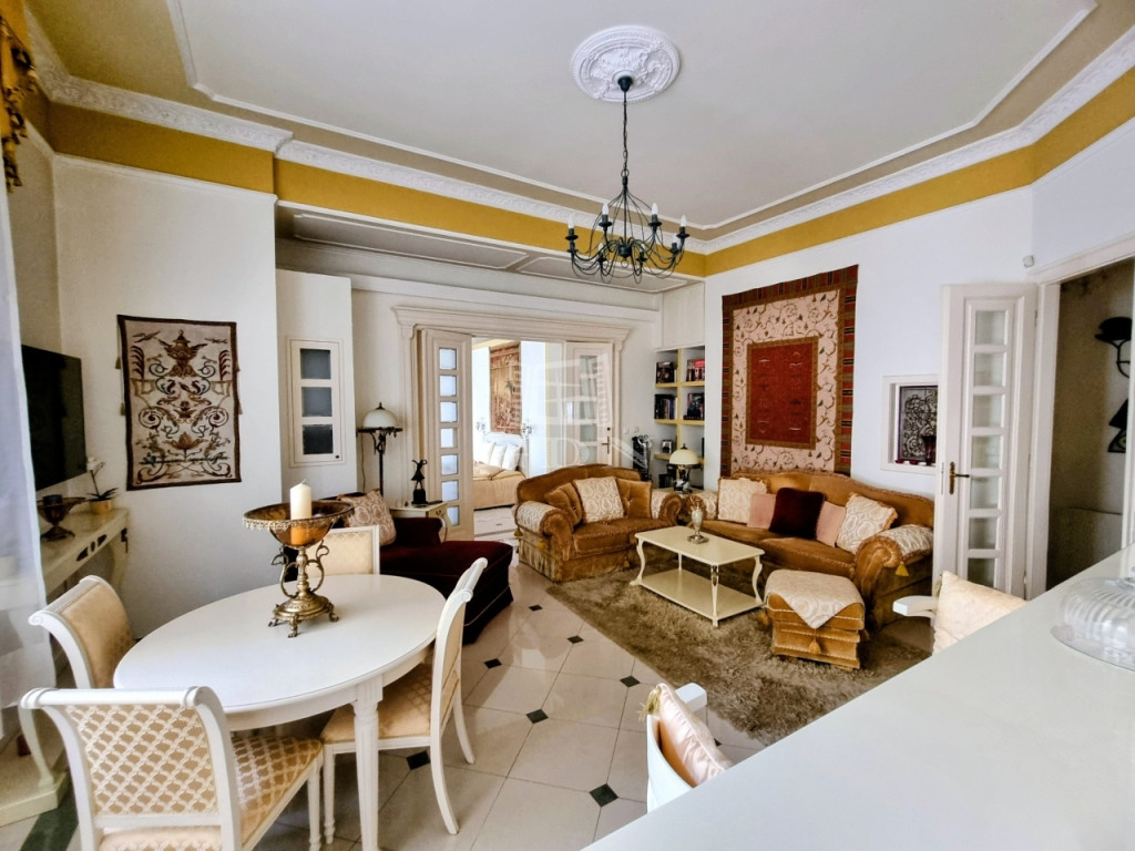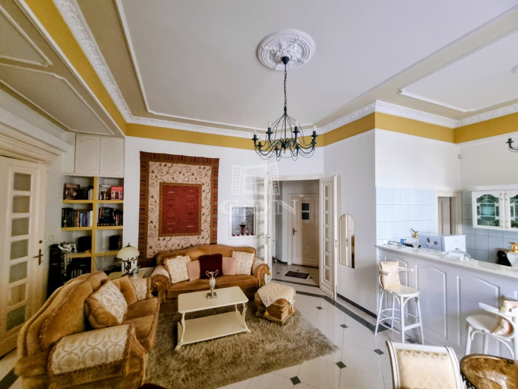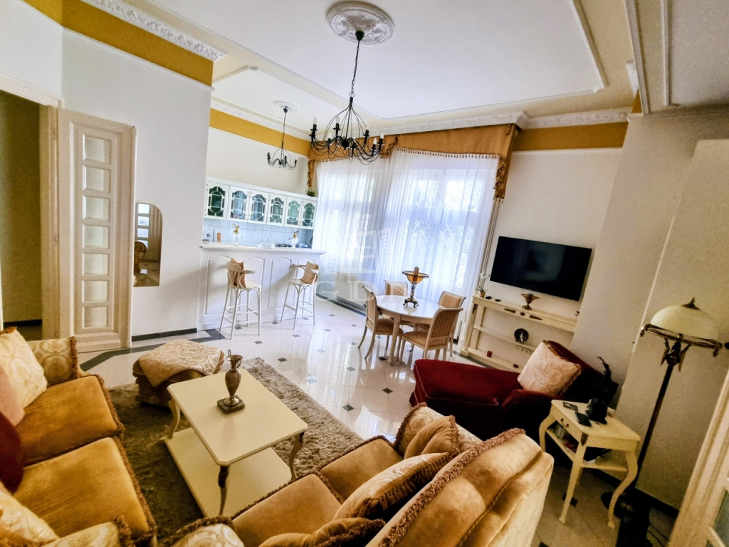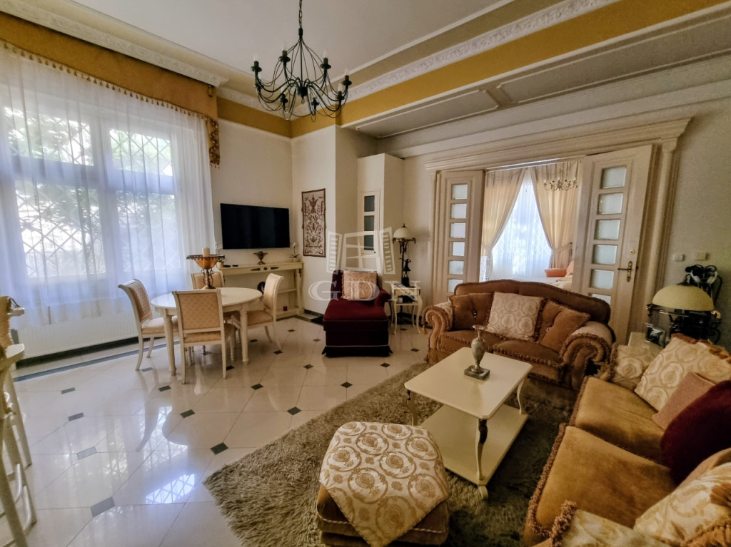 Az 1918- ban épült villa historizáló - eklektikus stílusban épült, az építész annak idején a házat saját magának tervezte, napjainkban folyamatosan karbantartott, állapot megőrzése, illetve javítása érdekében a társasház folyamatosan törődik vele, pályázatokon indul! Eladó ingatlanunk a magasföldszinti szinten helyezkedik el, (alaprajzon a lilával körbejelölt) egyik különlegessége, hogy a házba egy tekintélyes 33 nm-es külső teraszról jutunk be, majd a lakást egy zárt lépcsőházból közelíthetjük meg, ami a szomszéd ingatlannal kizárólagos használatban van.