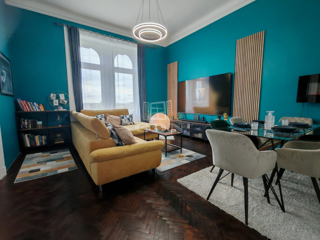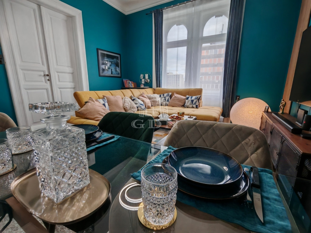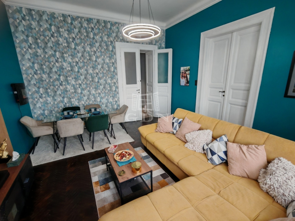 Az ingatlan egy 1910-ben épült, historizáló–eklektikus stílusjegyeket hordozó társasházban található, amely szépen őrzi a klasszikus polgári építészet hangulatát. A lakás különleges atmoszféráját a 3,6 méteres belmagasság, a tágas, világos terek, valamint a polgári lakásokra jellemző elegáns arányok adják, amelyeket a felújítás során fiatalos dizájnnal ötvöztek.