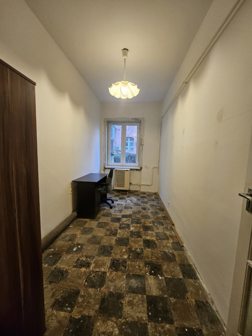 Az ingatlan egy téglából épült, két emeletes társasház magasföldszintjén található. Az ablakok belső udvarra néznek, így a lakás kifejezetten nyugodt, csendes.