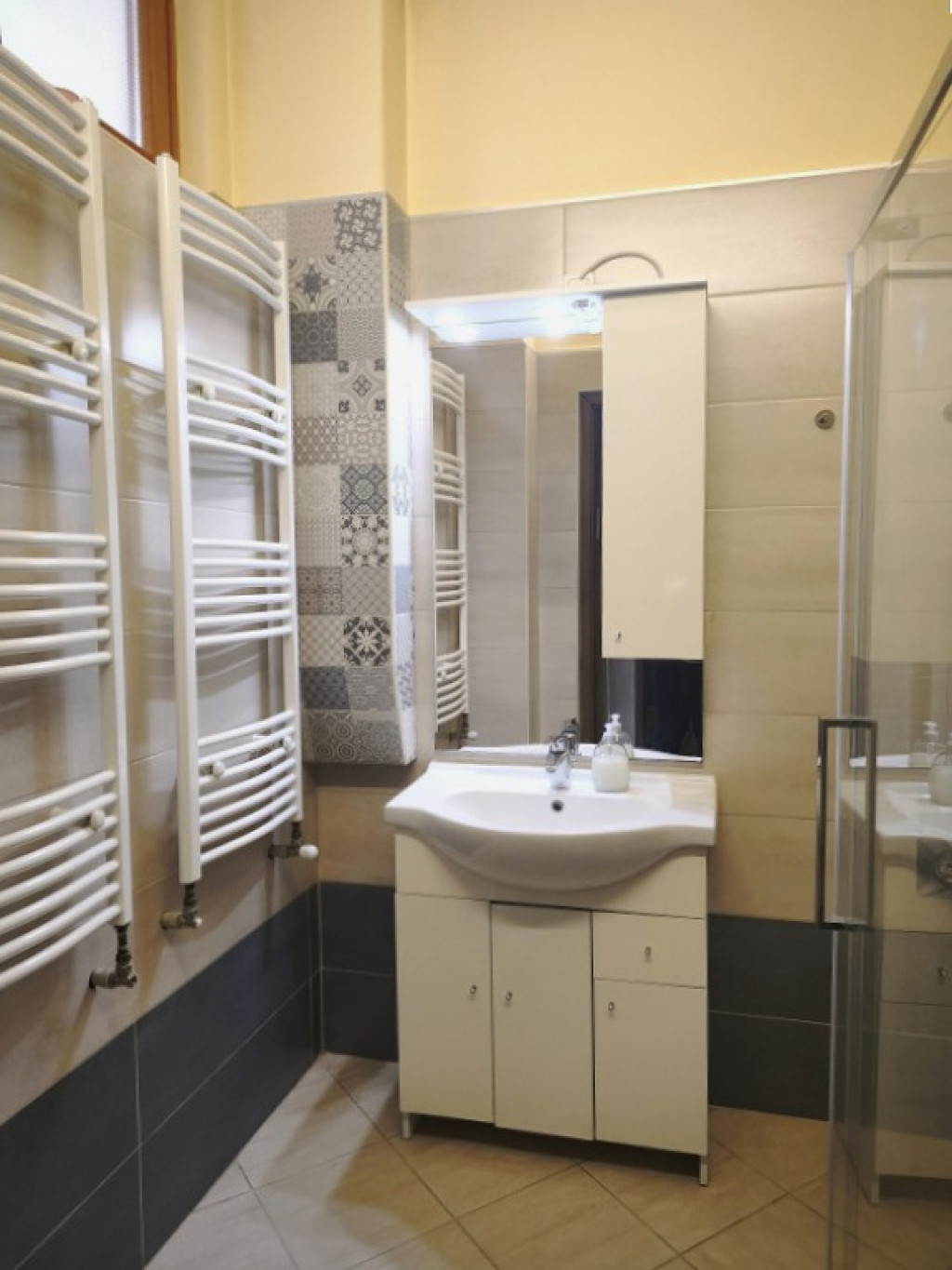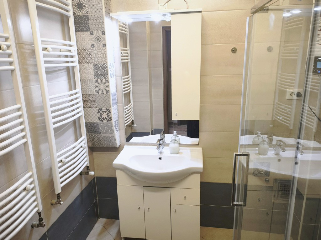 • modern, letisztult fürdőszoba dupla törölközőszárítóval