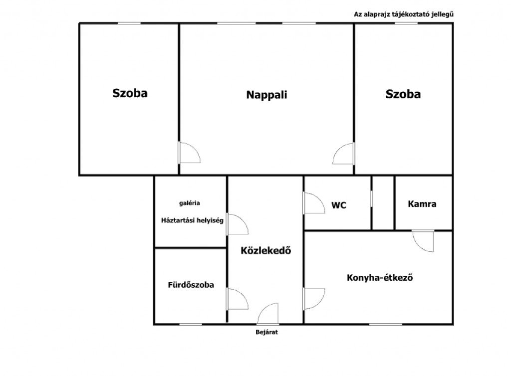 • Elrendezés: nappali + 2 külön nyíló egész szoba, étkezős konyha, kamra, gardrób, közlekedő, külön fürdő és WC