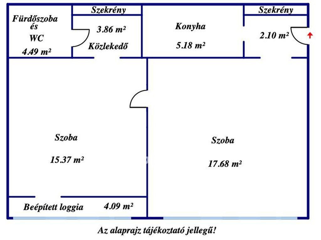 Az 50 négyzetméteres lakás kialakítása átgondolt és praktikus. Nincs felesleges tér, minden helyiség jól használható. A felújítás során a teljes víz- és elektromos hálózat cseréje megtörtént, valamint amperbővítés is történt.