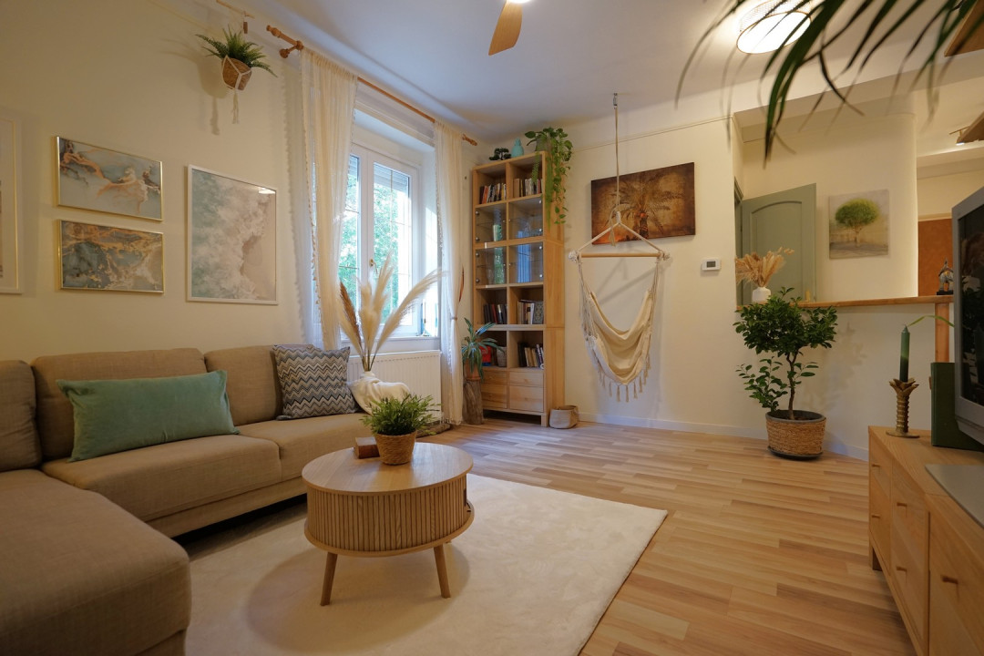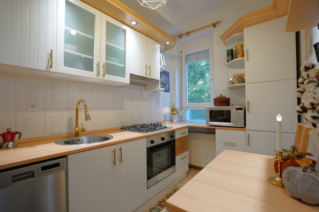 A felújítás saját részre történt, minőségi és ízléses anyagok felhasználásával. A végeredmény egy kimondottan bájos, életteli és nagyon jó hangulatú otthon lett!
