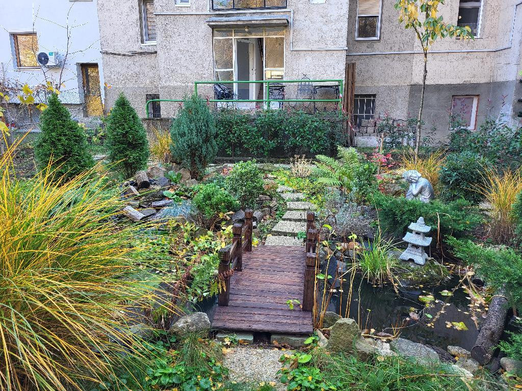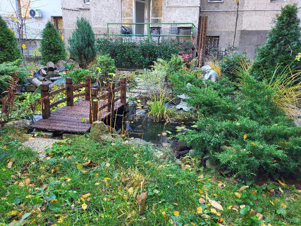 Eladó egy zöldövezeti, 2. emeleti lakás; közös használatú, gondozott belső kerttel. A jó elosztású, tágas ingatlan, 3 szoba-hallból, előszobából, erkélyből, gardróbból, konyhából, kamrából, fürdőből és WC-ből áll. A fűtést gázcirkó kazán biztosítja, az ablakok szigeteltek. A nappali és a dolgozószoba keleti fekvésű, de többi helyiség is világos. A hangulatos, belső kertre nyíló erkélyes lakás jól karbantartott, de a konyha és a WC már felújítást igényel az új tulajdonostól.