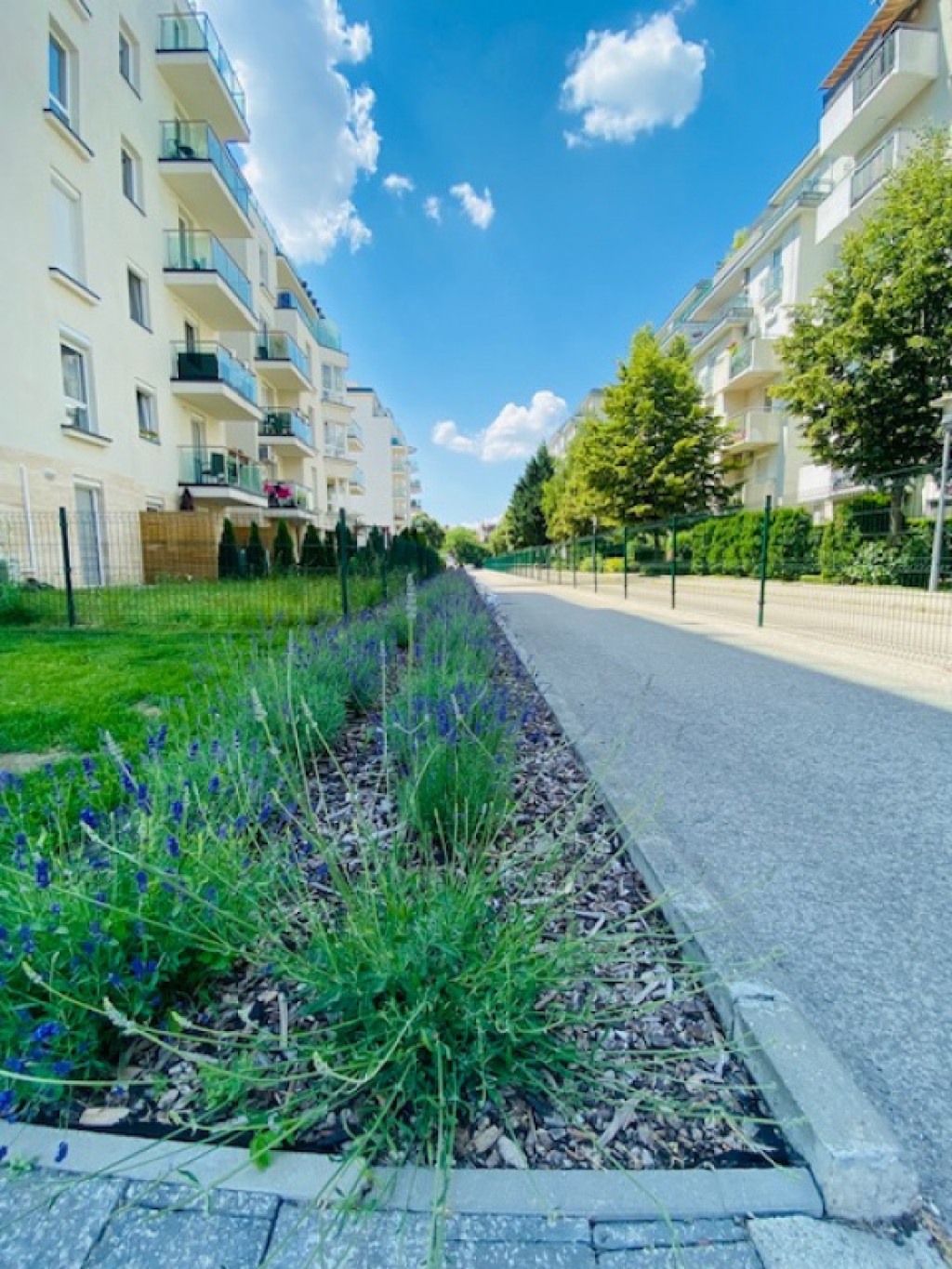 Eladó Zuglóban, Levendula lakóparkban 4 szobás 94 m2-es fekvésű luxuslakás. Tágas, amerikai konyhás, erkélyes nappaliszobával. 3 hálószobás, 2 fürdőszobás. A lakásban prémium minőségű burkolatok és bútorok vannak beépítve. Fűtése házközponti, nyári melegben a hűtésről klíma gondoskodik. Kellemes, világos D-DNY-i fekvésű lakás A lakópark kertje szépen gondozott park. A lakáshoz tartozó 2 teremgarázs beállót hozzá lehet vásárolni 7,5 Milló Ft-os egységáron.