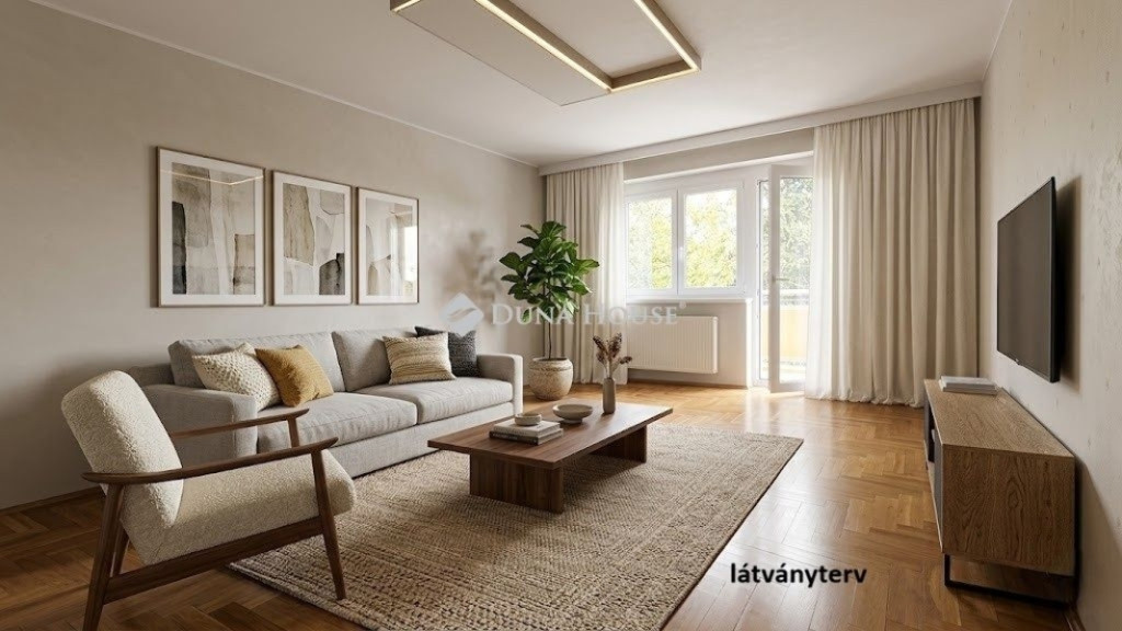 A hirdetésben szereplő képek közül néhány AI segítségével berendezett látványterv, melyek célja, hogy ötletet adjanak a lakásban rejlő lehetőségekre.