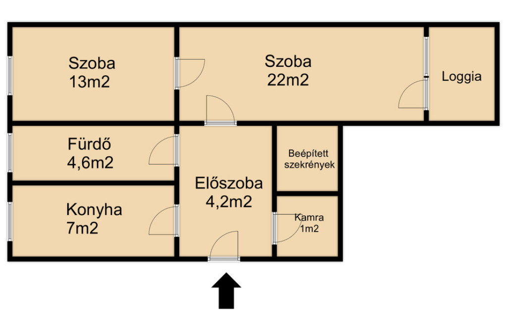 A tágas, világos lépcsőházból a lakásba lépve az előszobába érkezünk. Bal oldalon található a szeparált, ablakos konyha, majd a kádas, szintén ablakos fürdőszoba következik. A konyhával szemben kis kamra, mellette praktikus gardróbszekrény került elhelyezésre. Az előszobából egyenesen tovább haladva közelíthető meg a tágas nappali, amelyhez kellemes, délkeleti fekvésű loggia is kapcsolódik.A nappali bal oldalán nyílik a közlekedőből egy kényelmes méretű hálószoba,