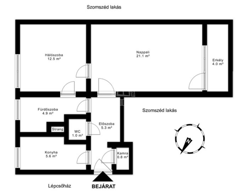 A téglaépítésű ingatlan a 3. emeleten helyezkedik el, két kényelmes méretű szobával rendelkezik.