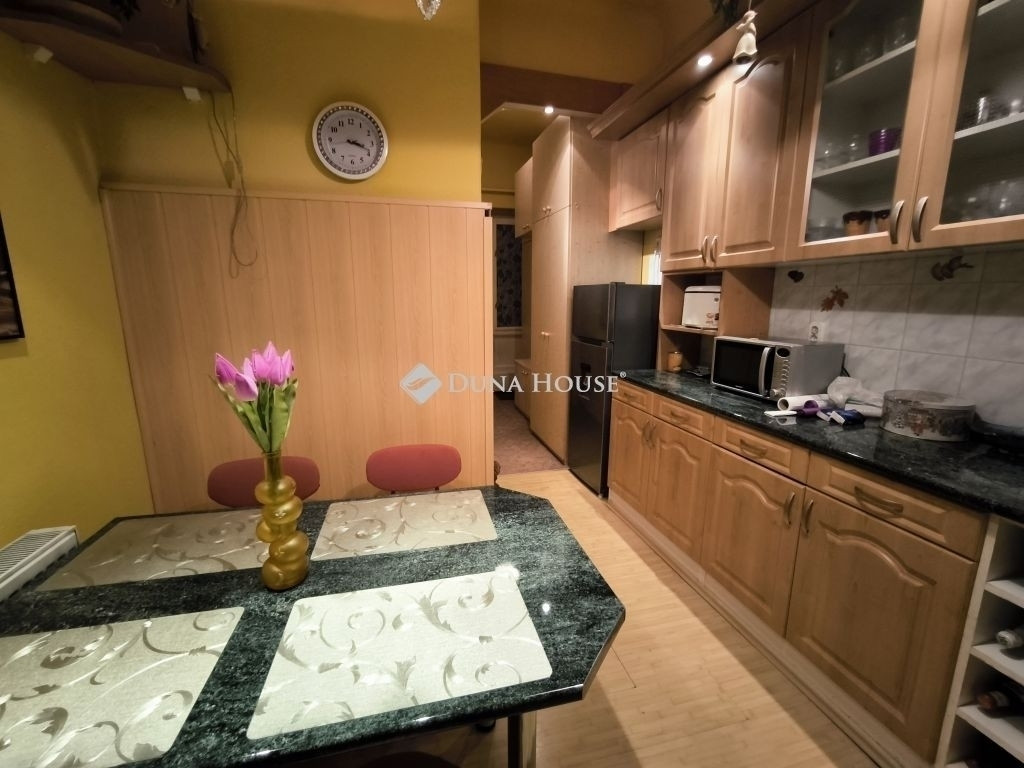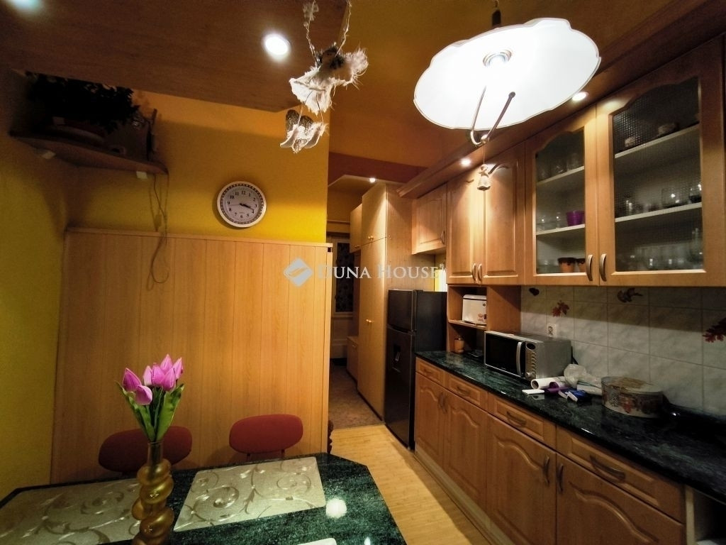 A gáz cirkó fűtéses akás karbantartott, de esztétikai felújítást igényelhet. A konyhabútor jó állapotú, fa kivitelű, az előszobában pedig pár éves, méretre gyártott gardróbszekrény található.