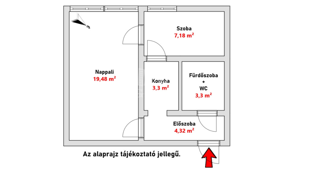 A lakás praktikus elrendezésű: előszoba, egy nagyszoba, egy félszoba, konyha, fürdőszoba + WC, valamint egy külön tárolóhelyiség használata is tartozik hozzá.