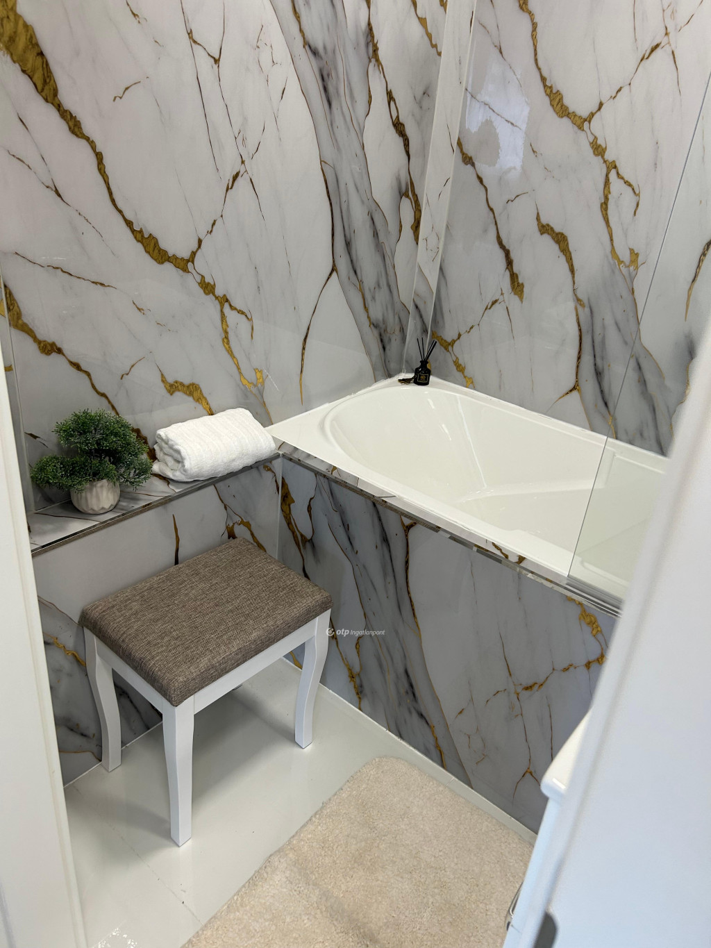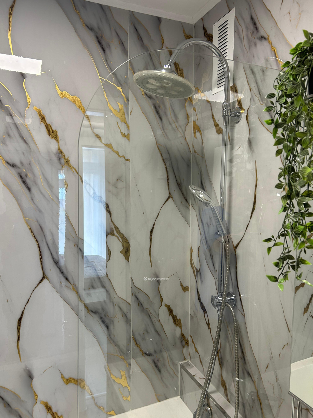 - Fürdőszoba esőztető zuhannyal, kádparavánnal, tágas kialakítással