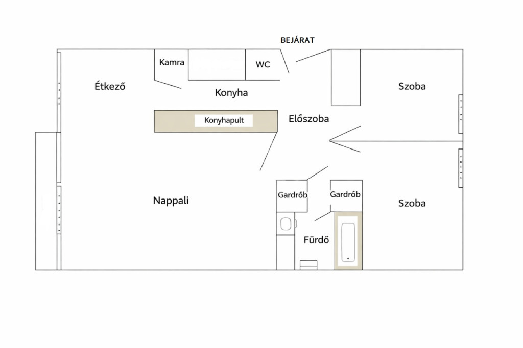 - Ideális elrendezés családnak: ebédlő+ nappali + két külön nyíló szoba