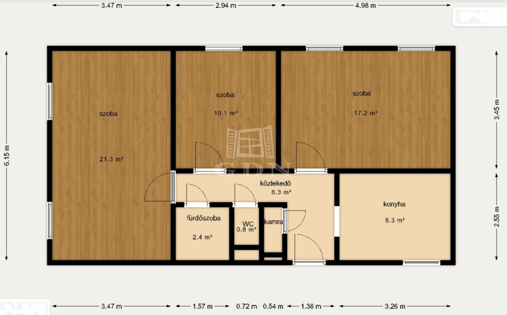 ✔️ A lakás remek elosztású: minden helyiség külön nyílik, a terek tágasak és praktikusak.