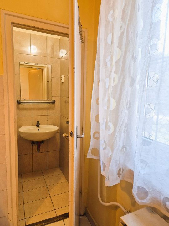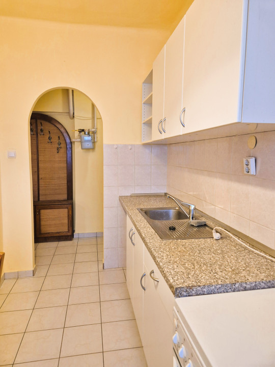 Innen nyílik a konyha boltívvel, a szoba, és a toalett .