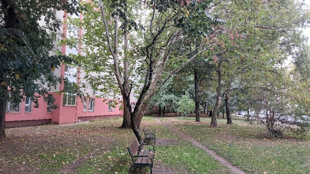 - A nappali erkélye parkra néz, északnyugati fekvéssel, kellemes délutáni fénnyel .