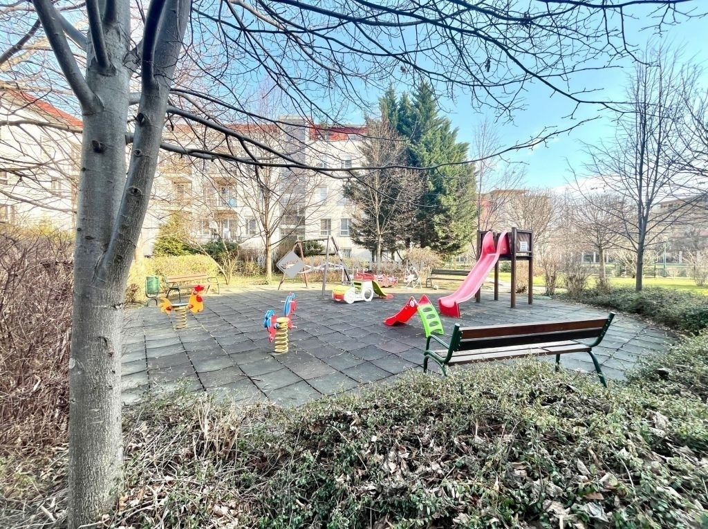A lakás egy rendezett, kulturált társasházban található, amely egy zárt, parkosított lakópark része. A lakópark gondozott belső kertjeit kertész tartja karban, a lakók számára pedig pihenőpadok és egy kisebb játszótér is rendelkezésre állnak. A környezet kifejezetten csendes és nyugodt, ami ritka előny a városban.