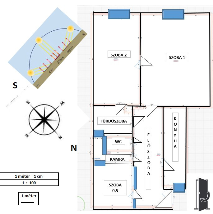 Az ingatlan a ház magasföldszintjén helyezkedik el, délnyugati fekvésének köszönhetően világos, napos.