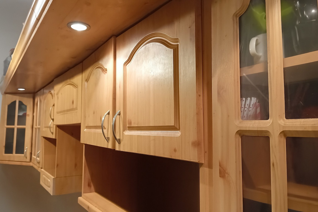 A konyhában lévő egyedi fali szekrények az ingatlan részét képezik, a vételárban benne vannak.