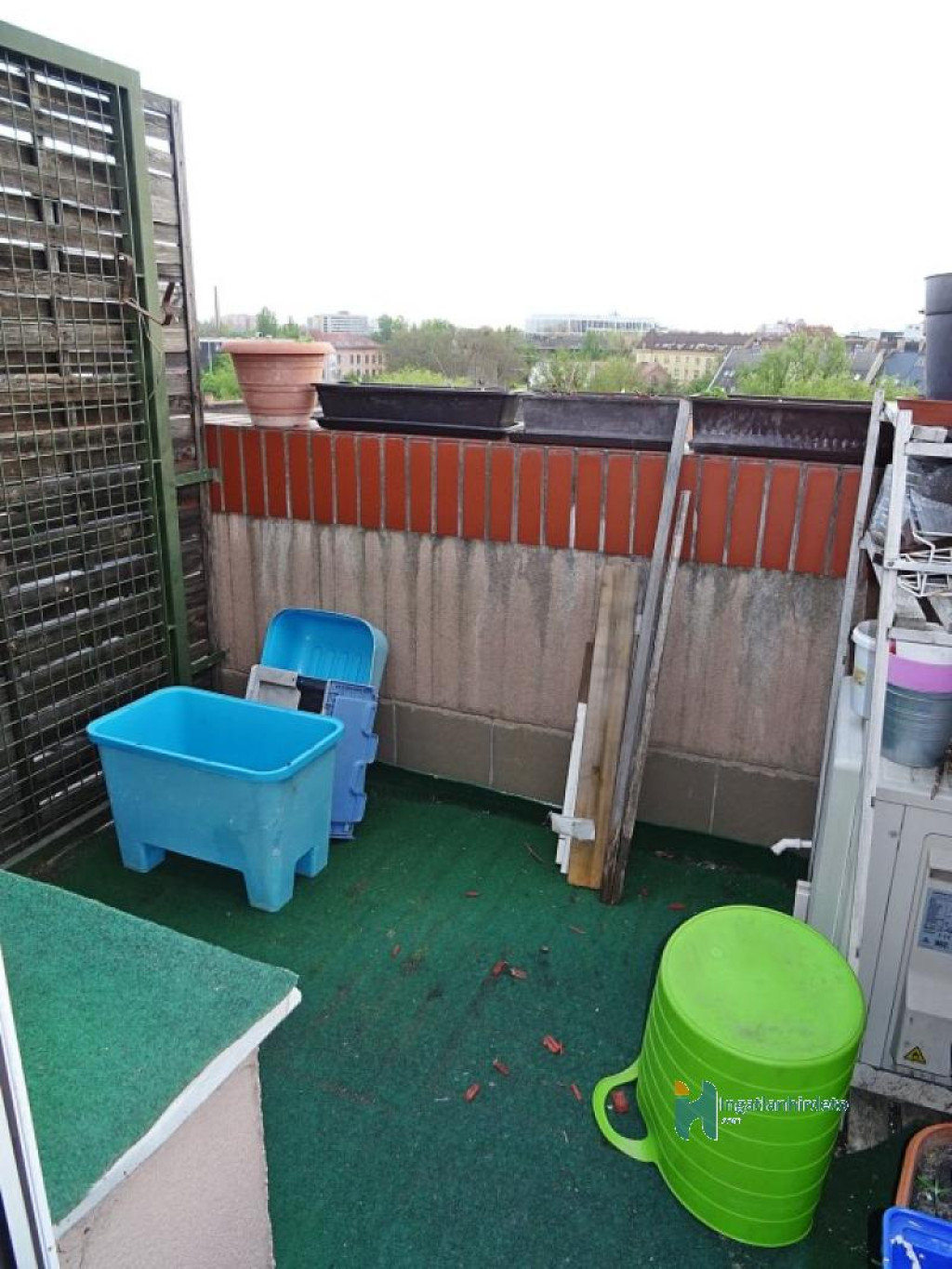 A lakáshoz tartozik egy kb. 2 m2-es, zárt tároló a lakás előtti folyosón, mely benne van a vételárban, de külön HRSZ-en van.