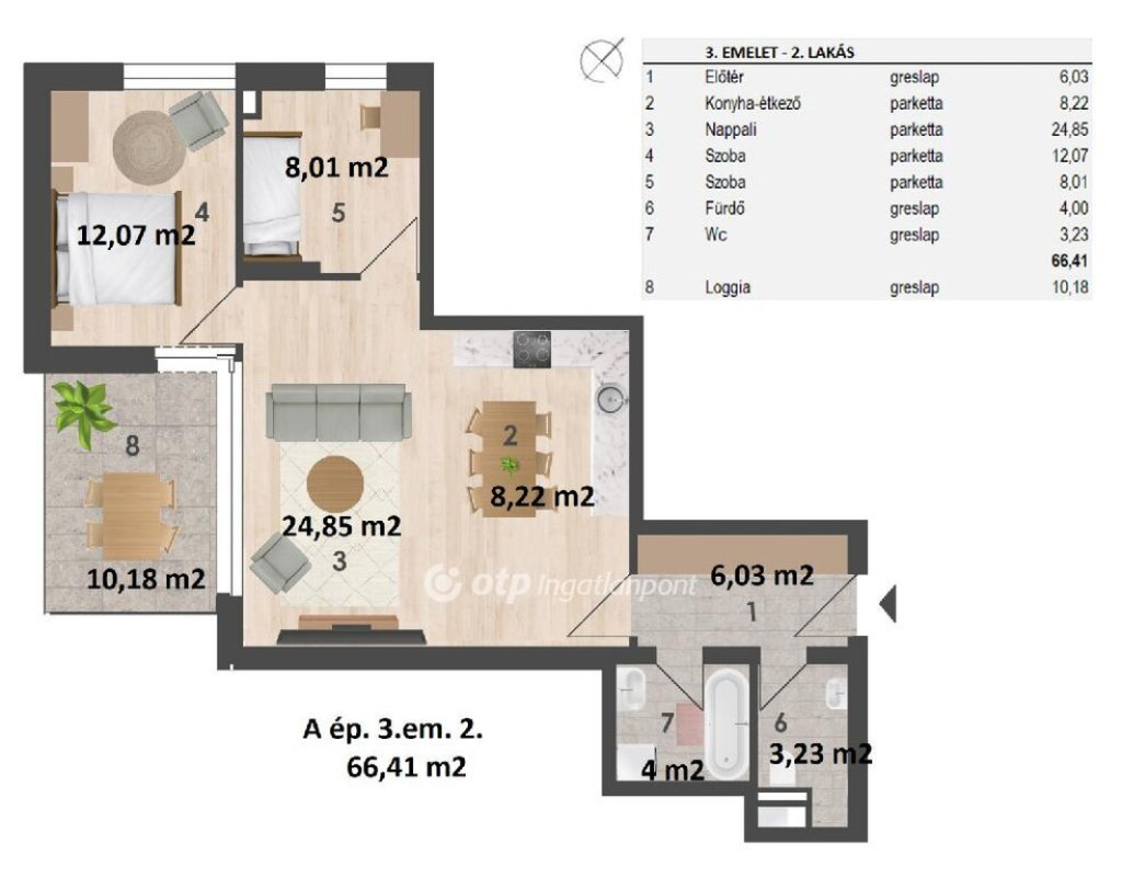 Prémium új építésű otthonok Zuglóban, ahol az infrastruktúra és a nyugalom találkozik. Eladó nappali plusz 2 hálószobás, harmadik emeleti, 66,41 nm-es lakás. Az otthon kényelméhez hozzájárul továbbá a 10,18 nm-es loggia. Budapest XIV. kerületének egyik csendes, mégis kiváló közlekedéssel és infrastruktúrával rendelkező részén kínálunk megvételre kiemelkedő minőségű, új építésű lakásokat egy exkluzív, kis lakásszámú projektben. A beruházás két különálló épületből áll, épületenként 3 szint, összesen 22 lakás, amely ideális választás mind saját otthonnak, mind értékálló befektetésnek. Megbízható, tapasztalt kivitelező, osztrák minőségi szemléletet követ. A projektet referenciákkal rendelkező, nagy tapasztalatú kivitelező valósítja meg, aki a munkálatok során szigorúan betartja az osztrák építőipari szabályokat és minőségi előírásokat. Az eredmény: hosszú távon is értékálló, prémium szintű lakóingatlan. Lakástípusok minden élethelyzetre találhatóak itt. Lakásméretek garzontól egészen 5 szobás otthonig. Földszinten kertkapcsolatos lakásokat terveztek. Parkosított, közös használatú belső udvart alakítanak ki szabadidőtöltésre. Főbb jellemzők: modern, energiatudatos műszaki tartalom: házközponti hűtés-fűtés hőszivattyúkkal, oldalfali fan-coil készülékek, napelemes villamosenergia-ellátás, teremgarázsban vásárolható parkolóhelyek, emelő berendezéssel. Kiemelkedő szerkezeti és akusztikai megoldások:hanggátló lakáselválasztó rendszer;- Prémium belső anyaghasználat,pl. lakásokon belül vízálló laminált padló; fóliázott fehér vagy festhető MDF szegélyek; prémium német villamos anyagok.: Átadás: 2026. év vége.