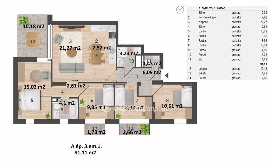 Prémium új építésű otthonok Zuglóban, ahol az infrastruktúra és a nyugalom találkozik. Eladó 5 szobás: nappali plusz 4 hálószobás, harmadik emeleti, 91,11 nm-es, dupla fürdős lakás. Az otthon kényelméhez hozzájárul továbbá a 10,18 nm-es loggia és két kis erkély. Budapest XIV. kerületének egyik csendes, mégis kiváló közlekedéssel és infrastruktúrával rendelkező részén kínálunk megvételre kiemelkedő minőségű, új építésű lakásokat egy exkluzív, kis lakásszámú projektben. A beruházás két különálló épületből áll, épületenként 3 szint, összesen 22 lakás, amely ideális választás mind saját otthonnak, mind értékálló befektetésnek. Megbízható, tapasztalt kivitelező, osztrák minőségi szemléletet követ. A projektet referenciákkal rendelkező, nagy tapasztalatú kivitelező valósítja meg, aki a munkálatok során szigorúan betartja az osztrák építőipari szabályokat és minőségi előírásokat. Az eredmény: hosszú távon is értékálló, prémium szintű lakóingatlan. Lakástípusok minden élethelyzetre találhatóak itt. Lakásméretek garzontól egészen 5 szobás otthonig Földszinten kertkapcsolatos lakásokat terveztek. Parkosított, közös használatú belső udvart alakítanak ki szabadidőtöltésre. Főbb jellemzők: modern, energiatudatos műszaki tartalom: házközponti hűtés-fűtés hőszivattyúkkal, oldalfali fan-coil készülékek, napelemes villamosenergia-ellátás, teremgarázsban vásárolható parkolóhelyek, emelő berendezéssel. Kiemelkedő szerkezeti és akusztikai megoldások:hanggátló lakáselválasztó rendszer, prémium belső anyaghasználat pl. lakásokon belül vízálló laminált padló; fóliázott fehér vagy festhető MDF szegélyek; prémium német villamos anyagok. Átadás: 2026. év vége.