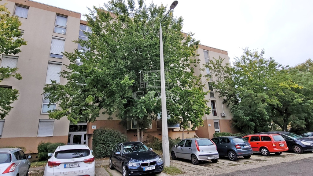 A nappali az Ady Endre út felé néz, a két hálószoba az épület mögötti csendes parkra.