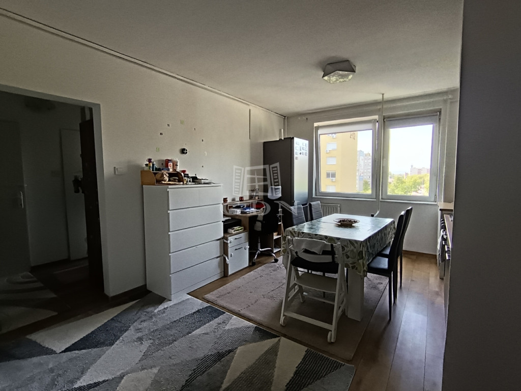 Az eredeti elrendezés alapján 2+1 fél szobás lakás volt, azonban jelenleg 2 szoba, plusz amerikai konyhás nappali került kialakításra.