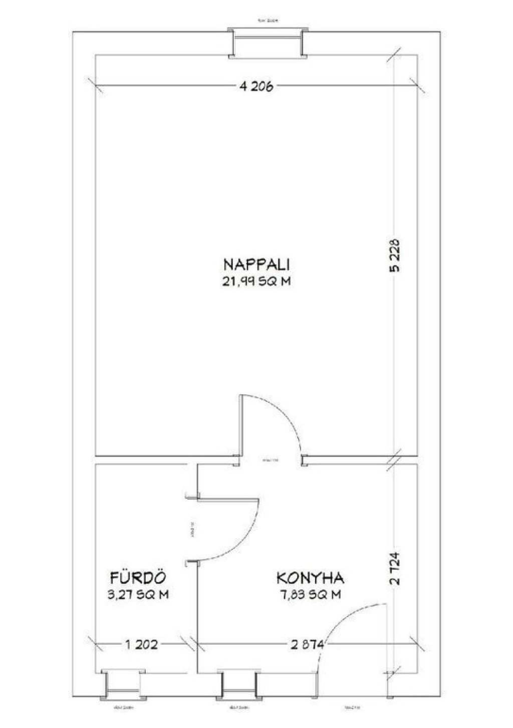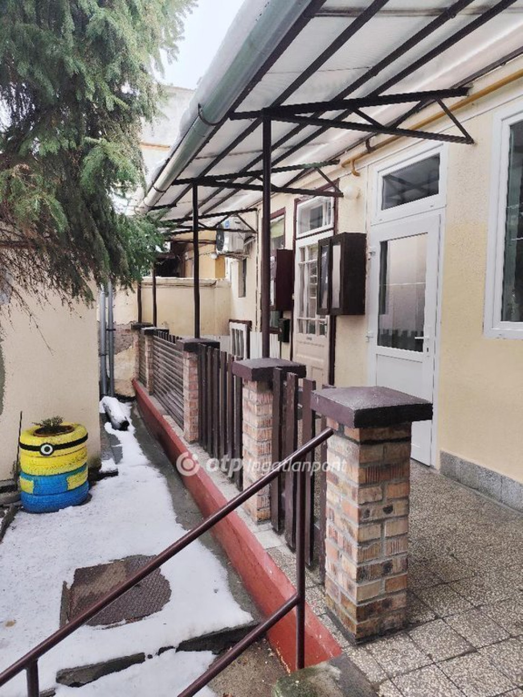 Elrendezését tekintve a konyhába érkezünk az előtetős gangról, melyból nyílik a szoba és a fürdőszoba is. Nyílászárók régiek, dupla, üvegezett bejárati ajtaja, duplaszárnyas ablakai vannak..